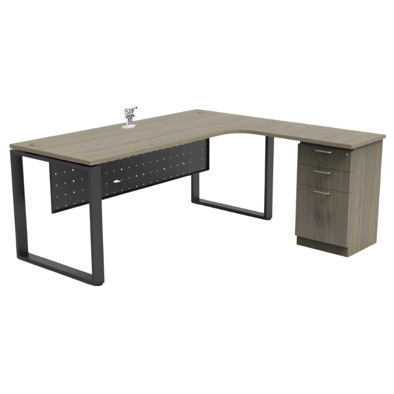 Executive SQ Series L-Shape Table SQ Metal C/W 2D1F Fixed Drawer